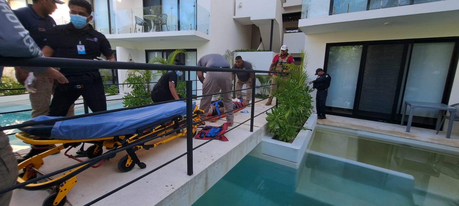 TULUM a 27 de mayo.  — Una persona travestí de nacionalidad estadounidense, identificada con el nombre de Mía, se encuentra en estado crítico tras caer del cuarto piso del hotel Leela Eco Spa, ubicado en la colonia La Veleta, en la intersección de la avenida Guardianes Mayas y la calle 5 Poniente.