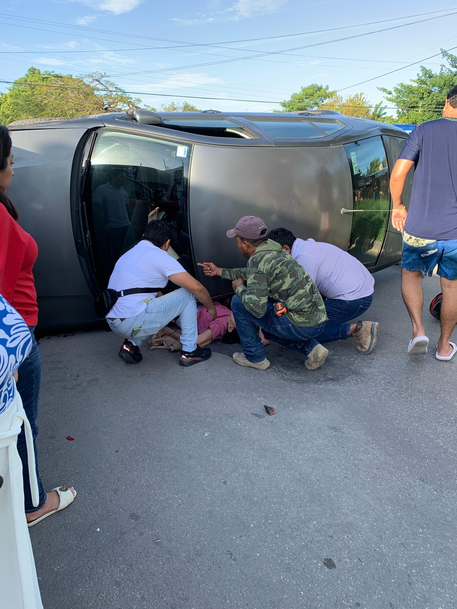 ► El percance ocurrió en la avenida Benito Juárez, donde un vehículo terminó volcado tras impactar contra una camioneta