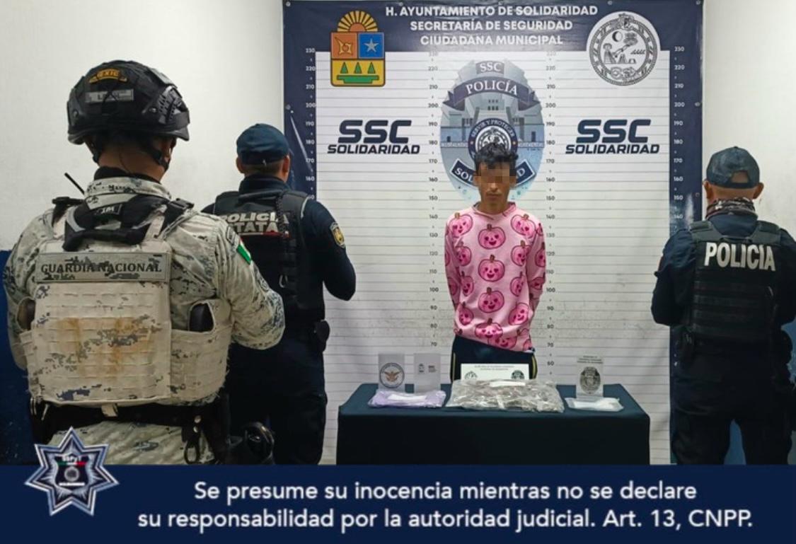 PLAYA DEL CARMEN, 27 de diciembre. – La Secretaría de Seguridad Ciudadana Municipal (SSCM) de Solidaridad detuvo a una persona del sexo masculino, y le aseguraron 116 posibles dosis de narcóticos, durante un recorrido de vigilancia “Colonia Segura” en varios puntos de Playa del Carmen.