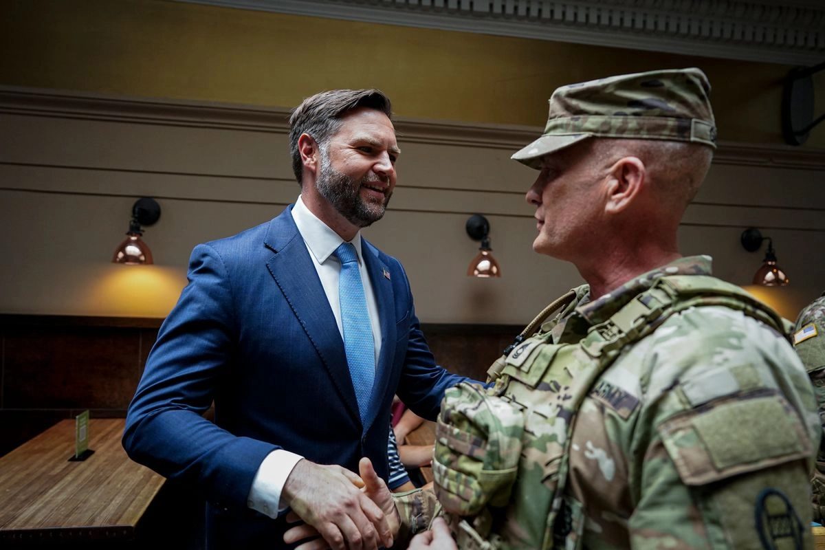 Vance visitó a las tropas en la estación de trenes Union Station junto al secretario de Defensa, Pete Hegseth, y el subjefe de gabinete de la Casa Blanca, Stephen Miller.