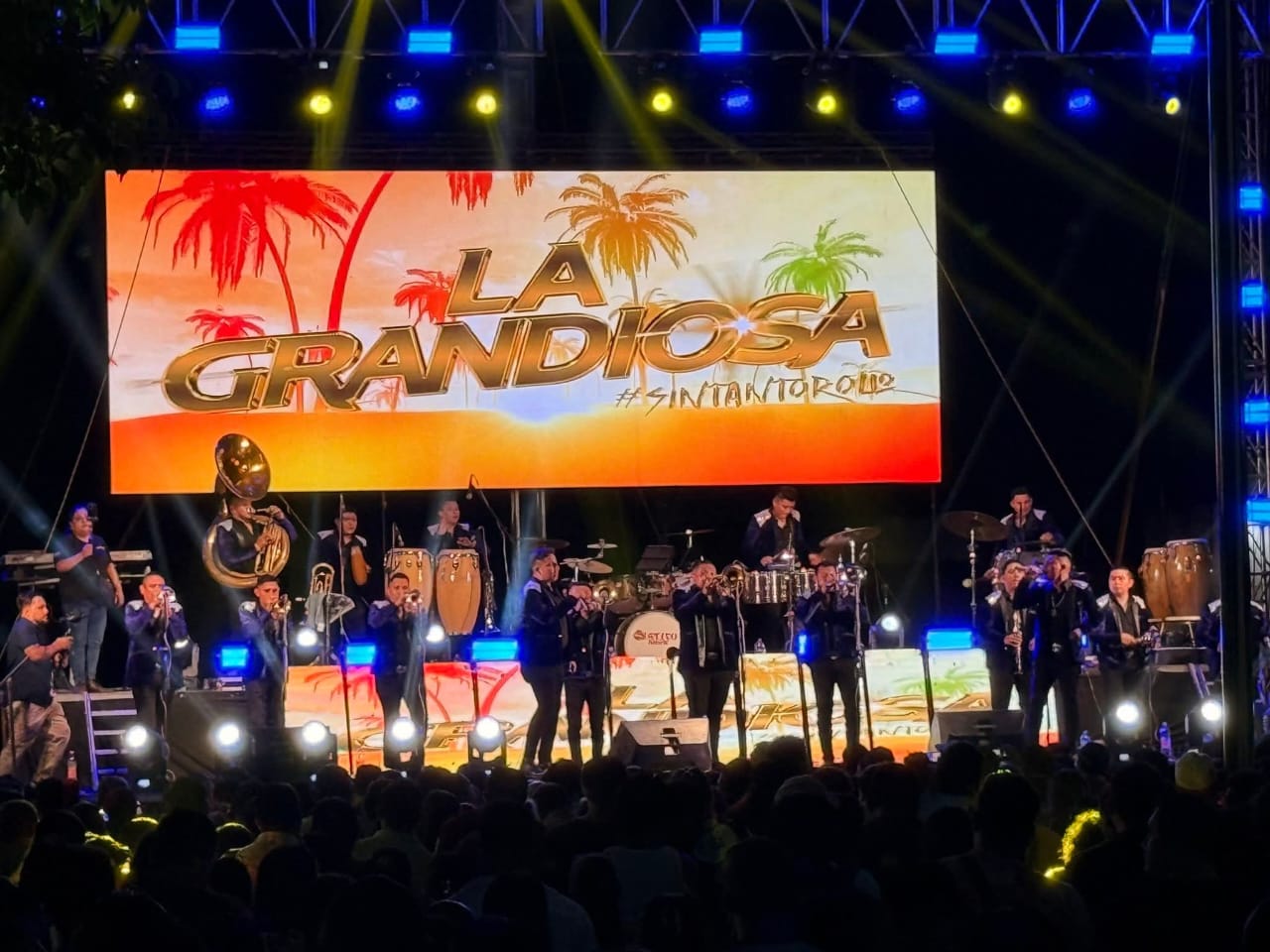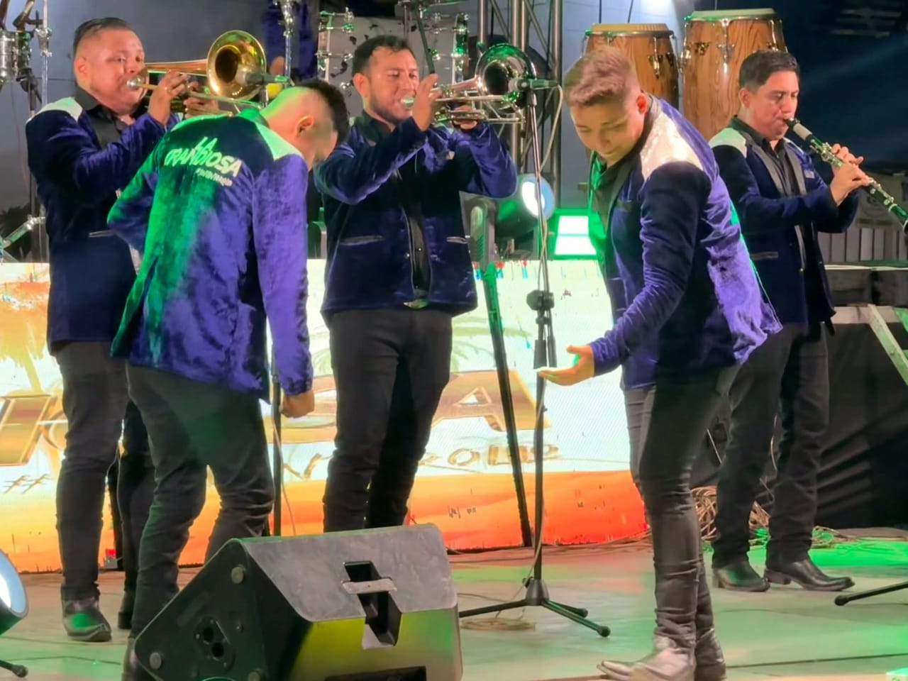 Durante la velada, temas como “La Cumbia de la Cobra” provocaron ovaciones y coros multitudinarios, mientras que los éxitos clásicos de Nativo Show transportaron al público a los años dorados de la cumbia tropical. El vocalista de La Grandiosa, ataviado con un traje de terciopelo azul y collares llamativos, se convirtió en el centro del escenario, dirigiendo la fiesta con carisma y energía.