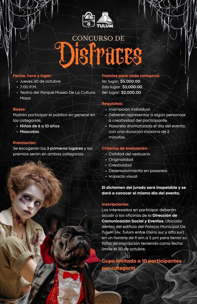 El certamen se llevará a cabo el jueves 30 de octubre a las 7:00 P.M. en el Teatro del Parque Museo de la Cultura Maya. Podrán participar niños de 6 a 10 años y mascotas, quienes desfilarán en una pasarela dramatizada de máximo dos minutos.