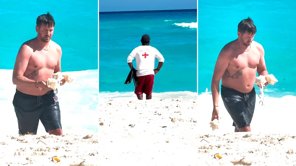 Turista Extranjero es Captado Sacando Caracoles del Mar en Cancún
