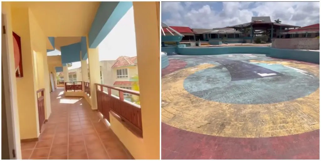 “El hotel está rodeado de vegetación, pero los edificios y las áreas de recreación están en mal estado. En las piscinas el plástico se quemó, la pintura se despegó, las baldosas se agrietaron. Es desagradable nadar, los toboganes no son seguros. El estanque atrae mosquitos”, señala.