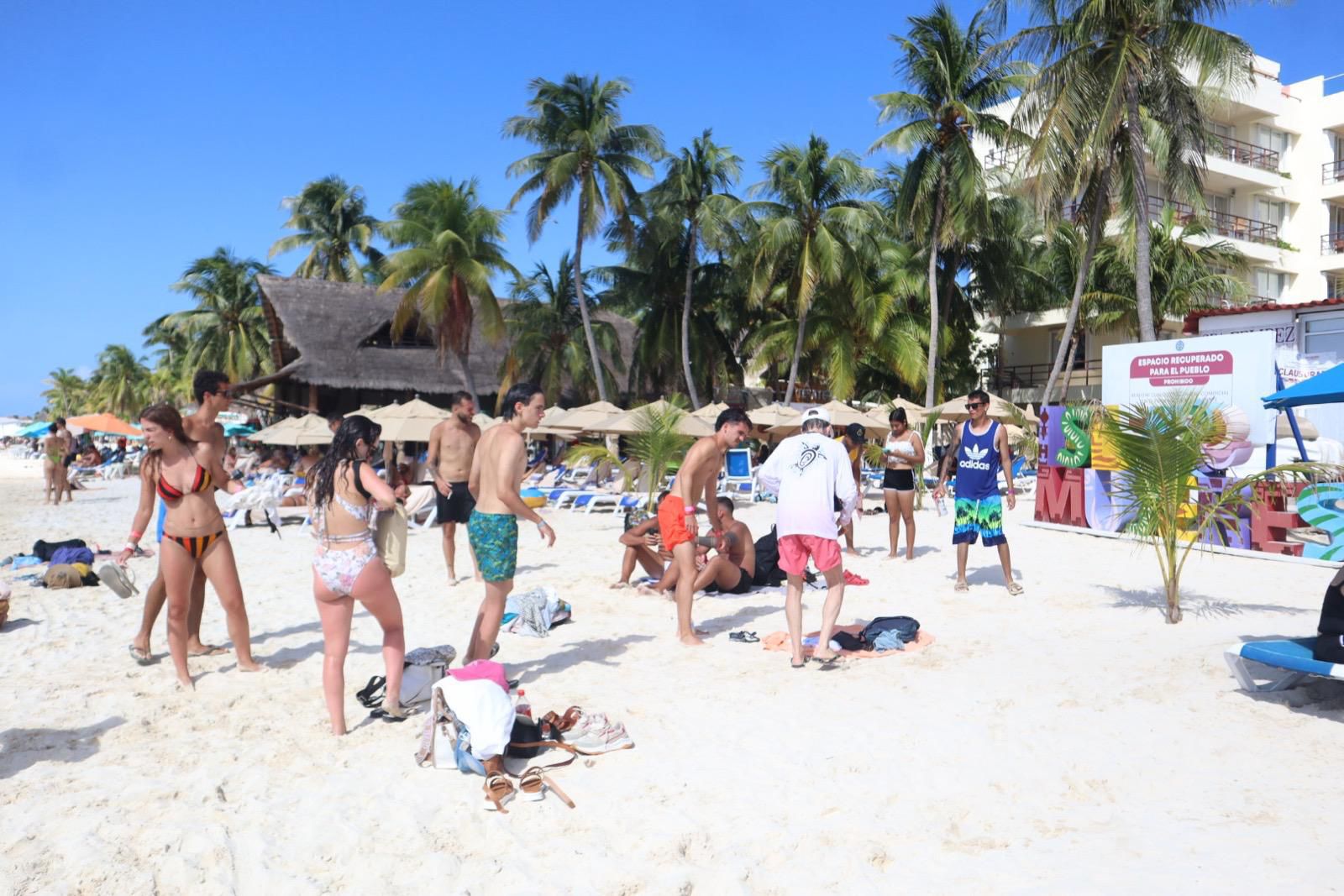 Turistas y Familias Isleñas Disfrutan de las Playas Limpias, Ordenadas y Libre de Sargazo de Isla Mujeres