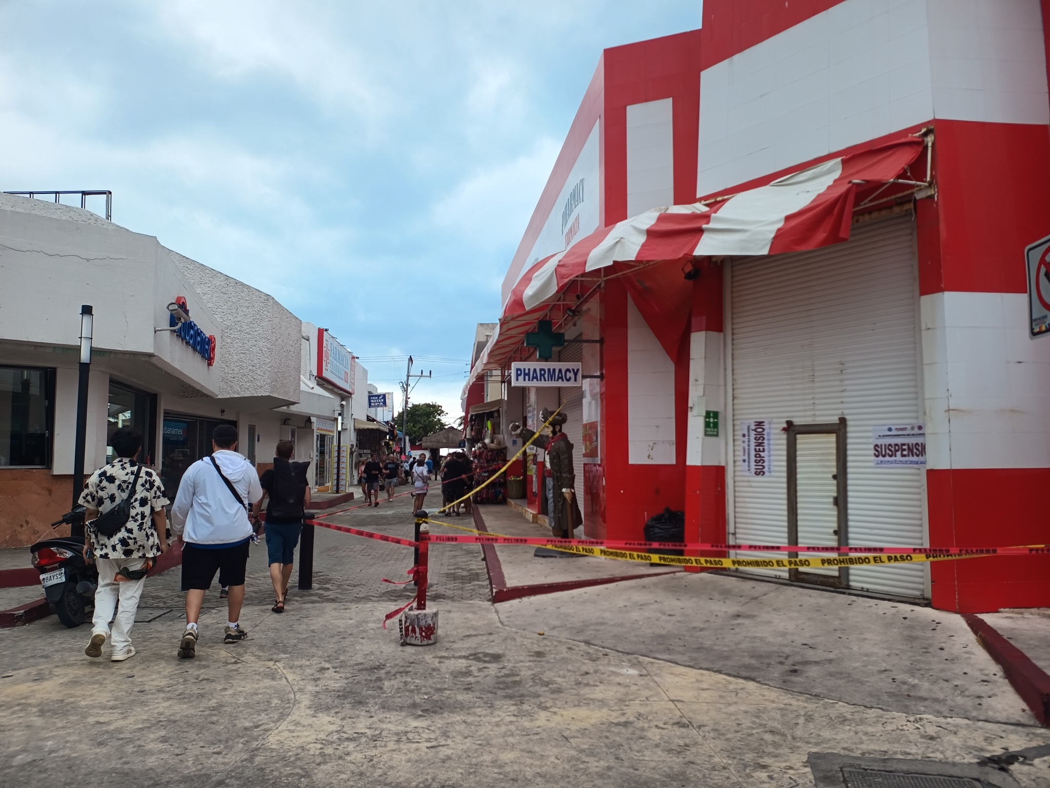 ISLA MUJERES Q.ROO, 21 de febrero-. Tras desprenderse varios plafones de la parte superior de su estructura, Protección Civil municipal suspendió actividades e instaló sellos en la tienda de conveniencia y farmacia “Faro”, ubicada sobre las avenidas Juárez y Morelos, a escasos metros del palacio municipal.