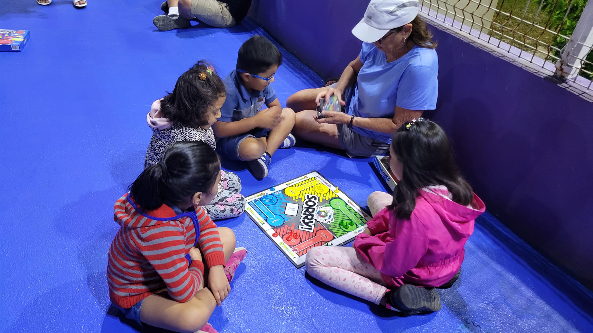 Niños y adultos, en su mayoría voluntarios extranjeros que apoyan gustosos esta desinteresada acción de la residente Lisa Godfrey, creadora de las Noches de Juegos, compartieron mesas e incluso el piso, sumamente entretenidos con los ya conocidos “Connect 4”, “Candyland”, “Trouble” y “Sorry”, además de descubrir nuevos horizontes con “Serpientes y Escaleras” y, especialmente “Jenga”, que fue el que tuvo mayor aceptación entre los niños, desde los más pequeños hasta los mayorcitos.