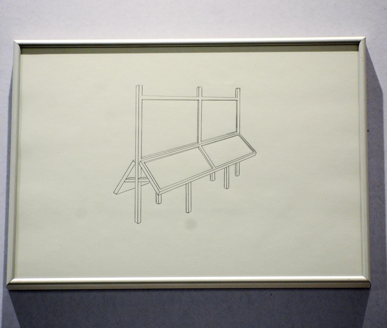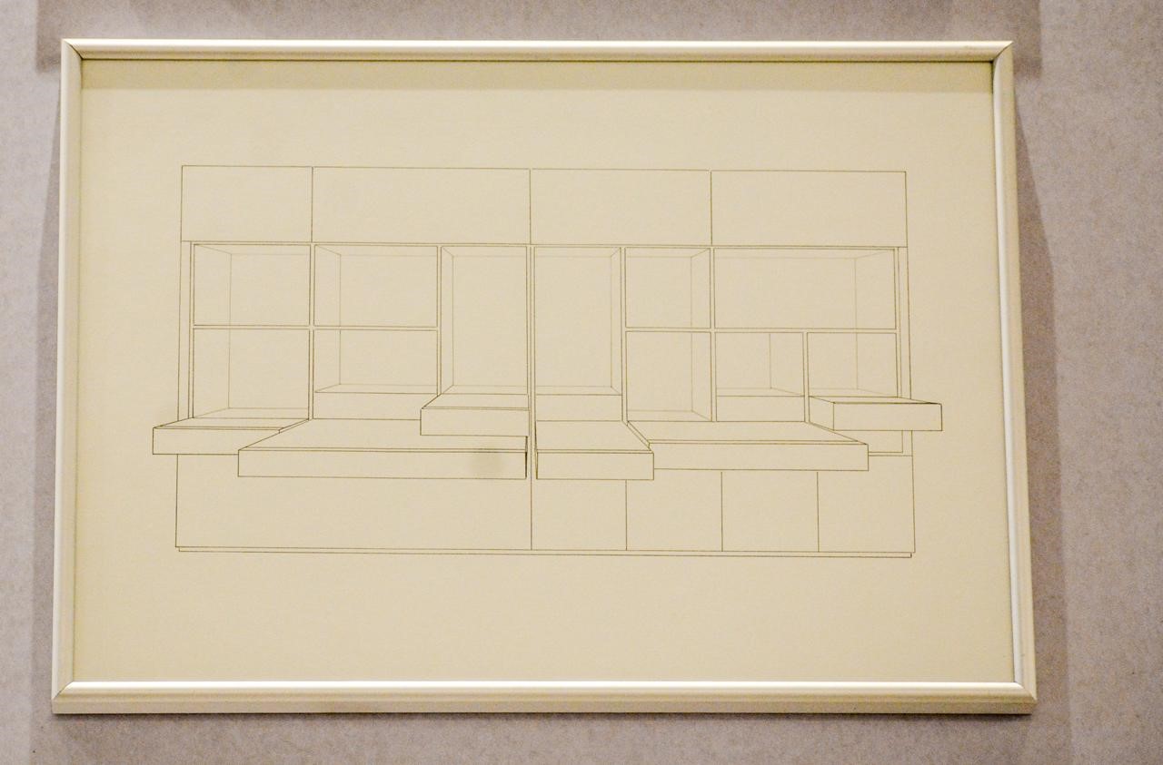 La artista también interviene el vestíbulo con diferentes dibujos del mobiliario y las vitrinas del recinto, que representan ausencias tanto discursivas como materiales, y que forman parte de una serie titulada Vitrina del mundo, en la que Irasema ha dibujado diversos museos. Esta intervención invita a una metalectura de la bodega del MACG, a través de trazos y silencios que permiten reimaginar otros relatos y formas de ocupar el espacio.