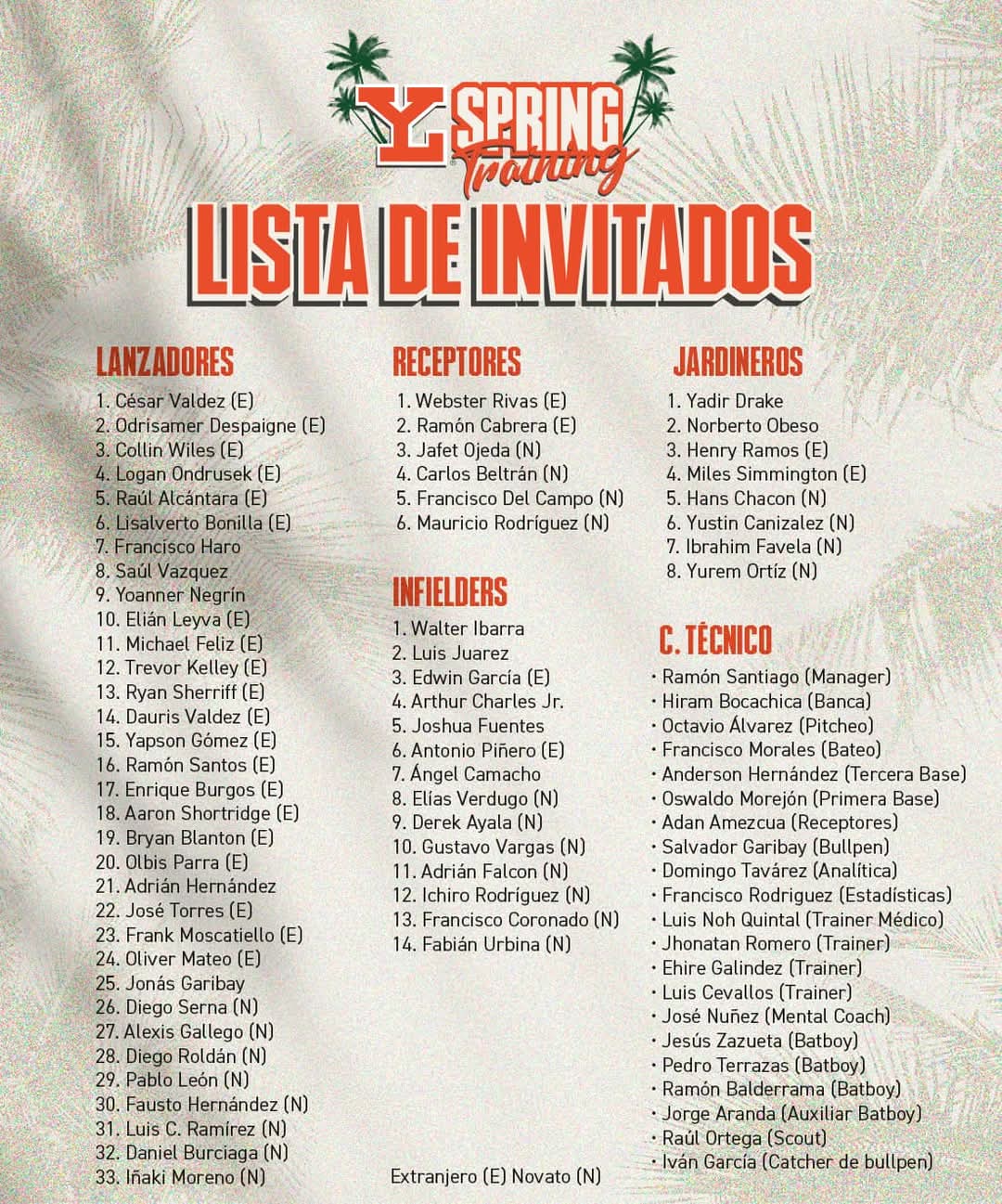 El “Güero” Urbina no la tiene sencillo, pero buscará llenarle el ojo a Ramón Santiago; y es que dentro de los infielders compite con peloteros ya establecido como Walter Ibarra, Luis “Pepón” Juárez, Edwin García (extranjero), Arthur Lee Charles, Joshua Fuentes, Antonio Piñero (extranjero) y Ángel Camacho, además de otros novatos como él, en las personas de Elías Verdugo, Derek Ayala, Gustavo Vargas, Adrián Falcón, Ichiro Rodríguez y Francisco Coronado.