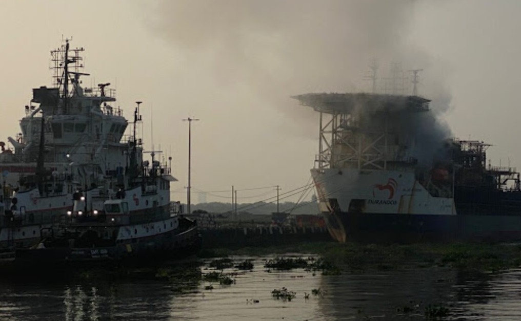 Un Buque se Incendia en el Puerto de Coatzacoalcos, Veracruz