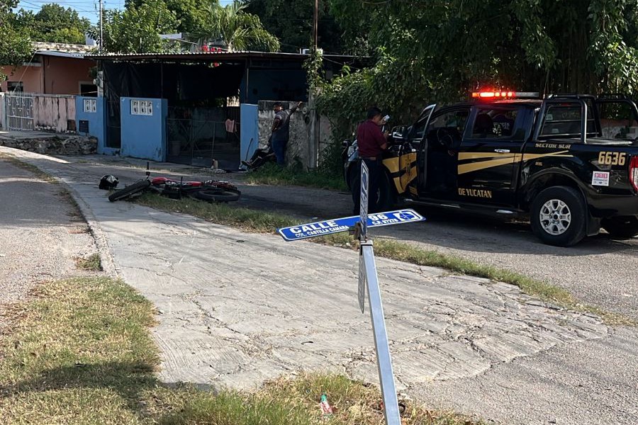 MÉRIDA, YUC.- 5 de diciembre.- Caro le salió a un motociclista conducir con exceso de velocidad, pues terminó con fractura de un antebrazo, al estrellarse contra un señalamiento en la curva que lleva a la Base Aérea, en Mérida.