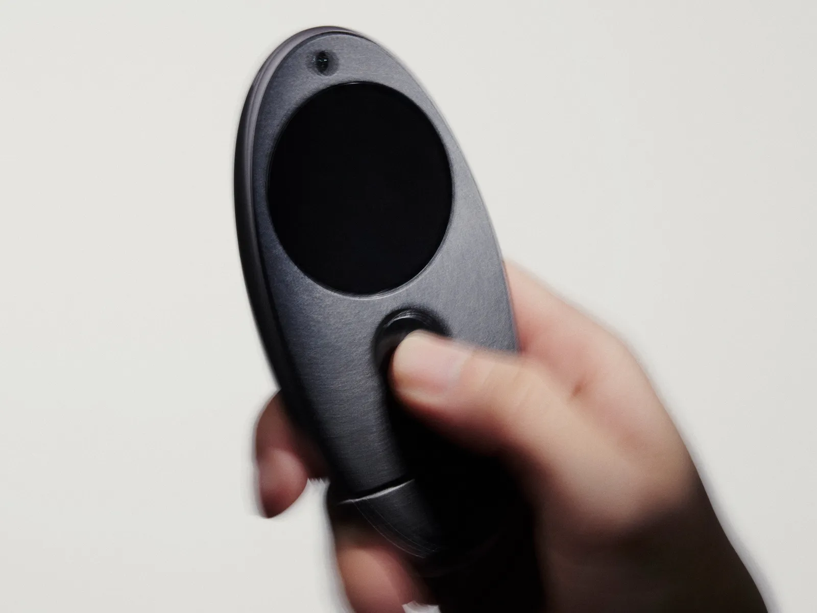 En un lado de Kyu hay una cámara con la que puedes grabar clips de 9 segundos (kyu significa nueve en japonés), y en el otro hay una pequeña pantalla OLED redonda de 1.6 pulgadas con un botón debajo para que puedas ver lo que estás grabando. Pulsa el botón para iniciar la grabación: hay espacio suficiente para 27 videoclips. Cuando la memoria esté llena, retira la base y conecta el conector USB-C a tu smartphone. Esto exportará todos los clips de video a la aplicación Kyu y borrará todo el contenido de la cámara Kyu para que puedas empezar de cero