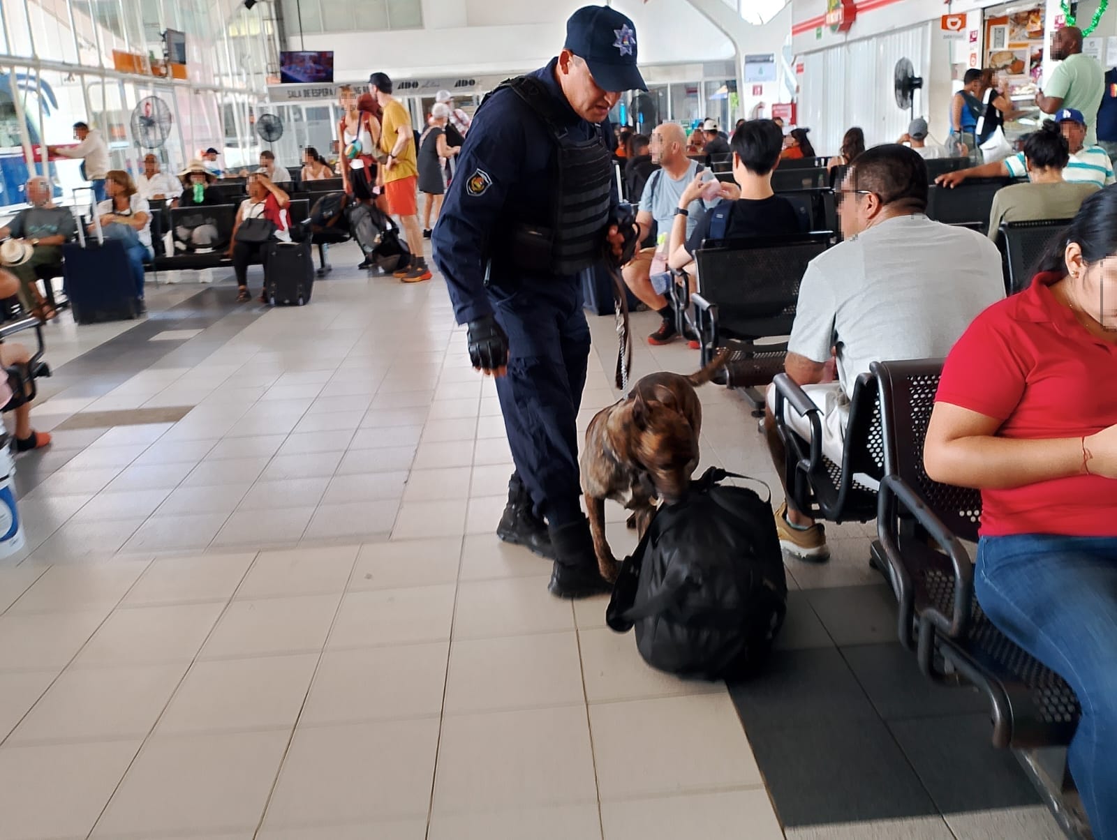 En Othón P. Blanco, el binomio “Kinich” realizó inspecciones en el Centro de Reinserción Social, mientras que en Solidaridad se realizaron revisiones en la terminal de autobuses ADO, donde “Logan” inspeccionó a 165 personas y cuatro autobuses.