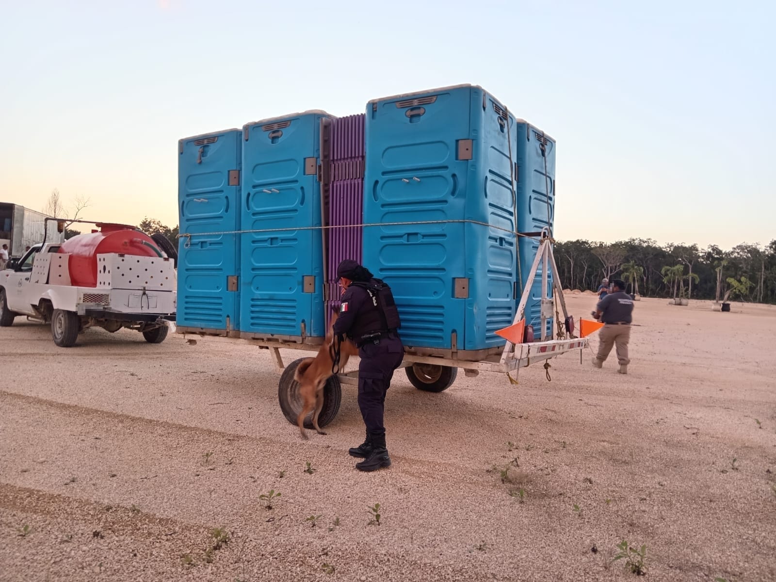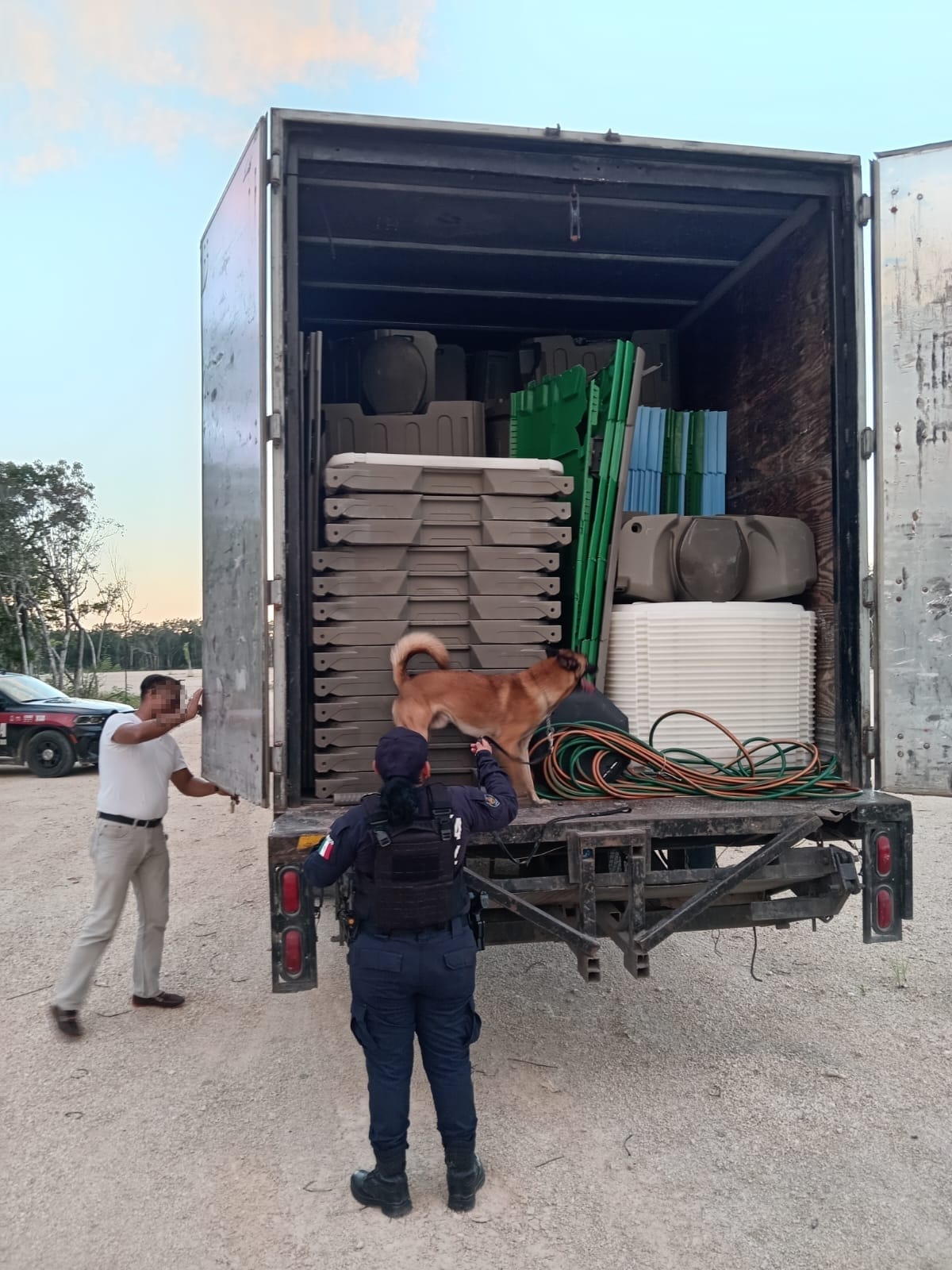 Por su parte, en el municipio de Tulum, el canino “Boris”, experto en detección de narcóticos, participó en un operativo en el Eco Hotel Zamna.