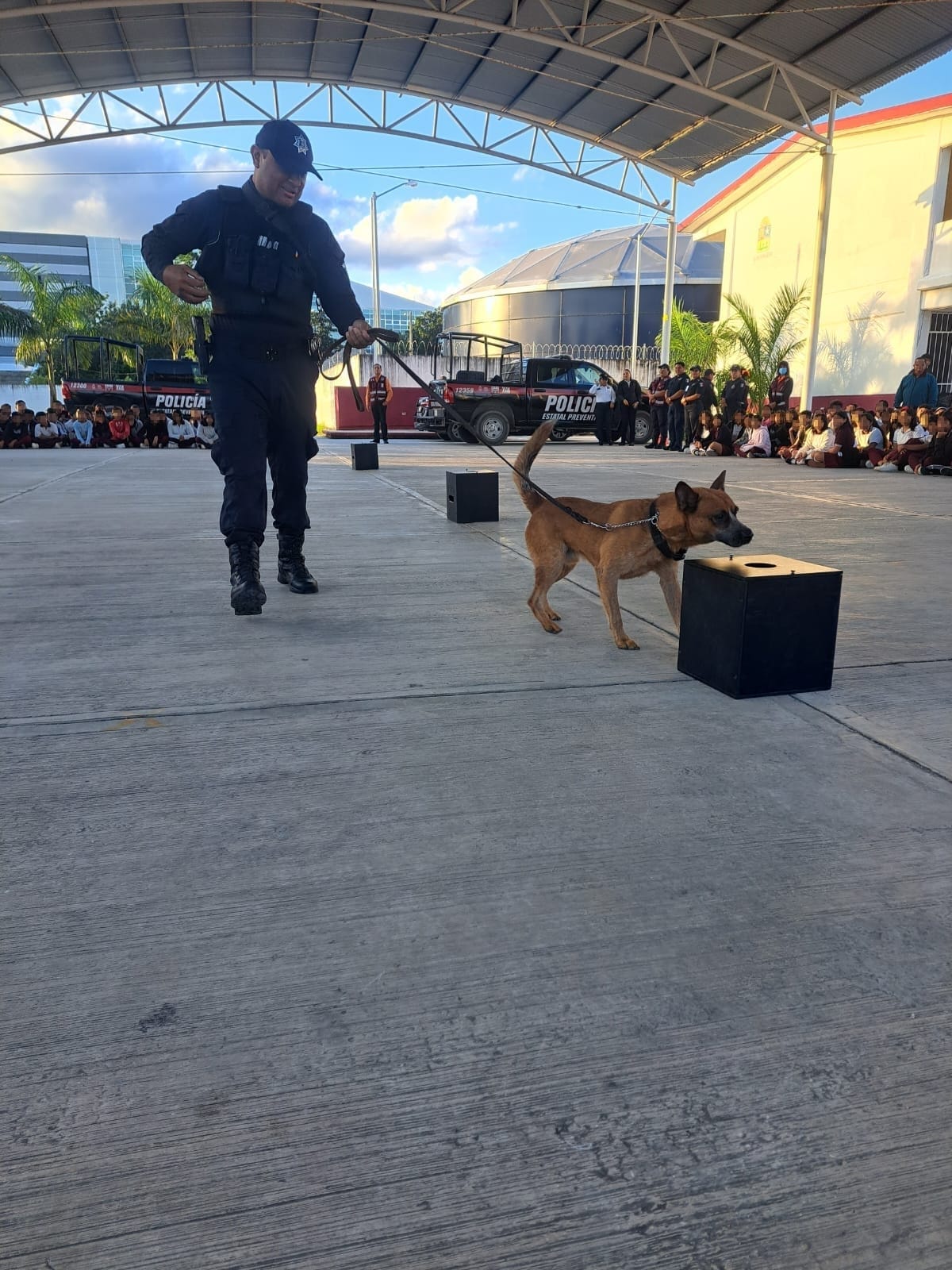 La Unidad Canina K9, conocida por su labor en la prevención del delito, replicó estas acciones en otros puntos del Estado.