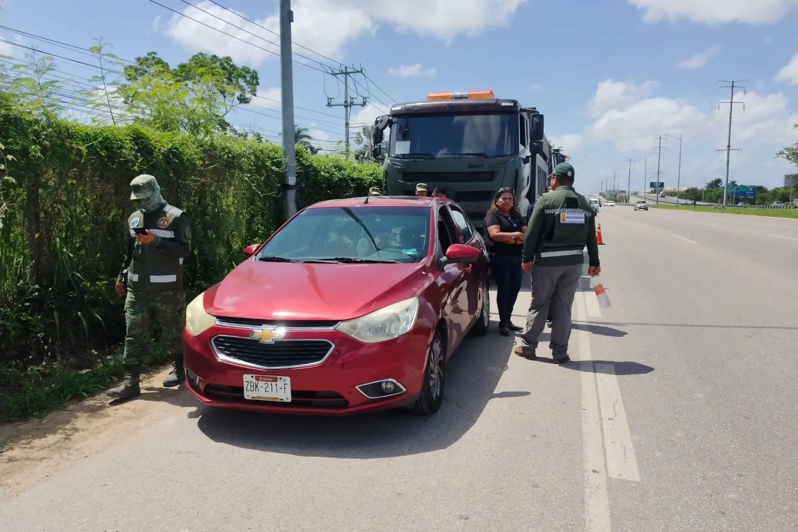 La mujer decidió perseguirlos hasta que entre las salidas de Dzityá e Xcanatún se colocó delante del convoy y frenó, haciendo que se detuvieran. Los militares bajaron y la mujer reclamó al conductor que manejaba al vehículo que dañó su Aveo.