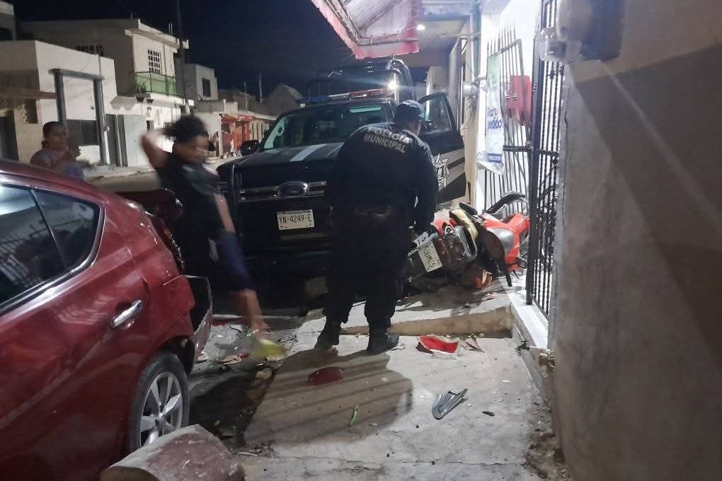 Unidad Policiaca de Progreso Choca Contra Moto y Auto en el Puerto