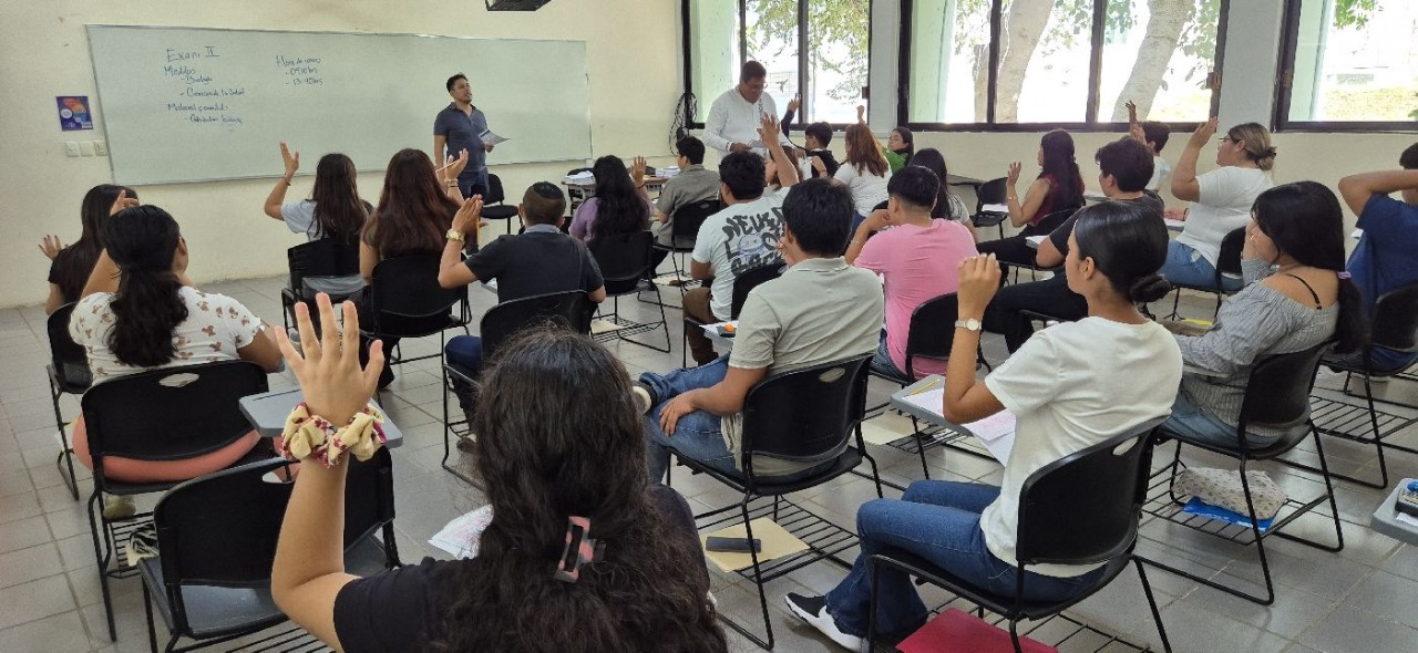 CHETUMAL, 22 de mayo. – Con una jornada marcada por la puntualidad y el entusiasmo, un total de 1,365 aspirantes presentaron el examen de admisión EXANI-II en los campus Chetumal Bahía, Chetumal Salud y Cancún de la Universidad Autónoma del Estado de Quintana Roo (UQRoo), con miras a obtener un lugar en las licenciaturas de Medicina, Enfermería y Farmacia para el ciclo escolar de Otoño 2025. Desde tempranas horas, los futuros universitarios arribaron a las instalaciones, donde personal de la Dirección General de Servicios Estudiantiles los recibió y orientó hacia sus respectivas aulas.