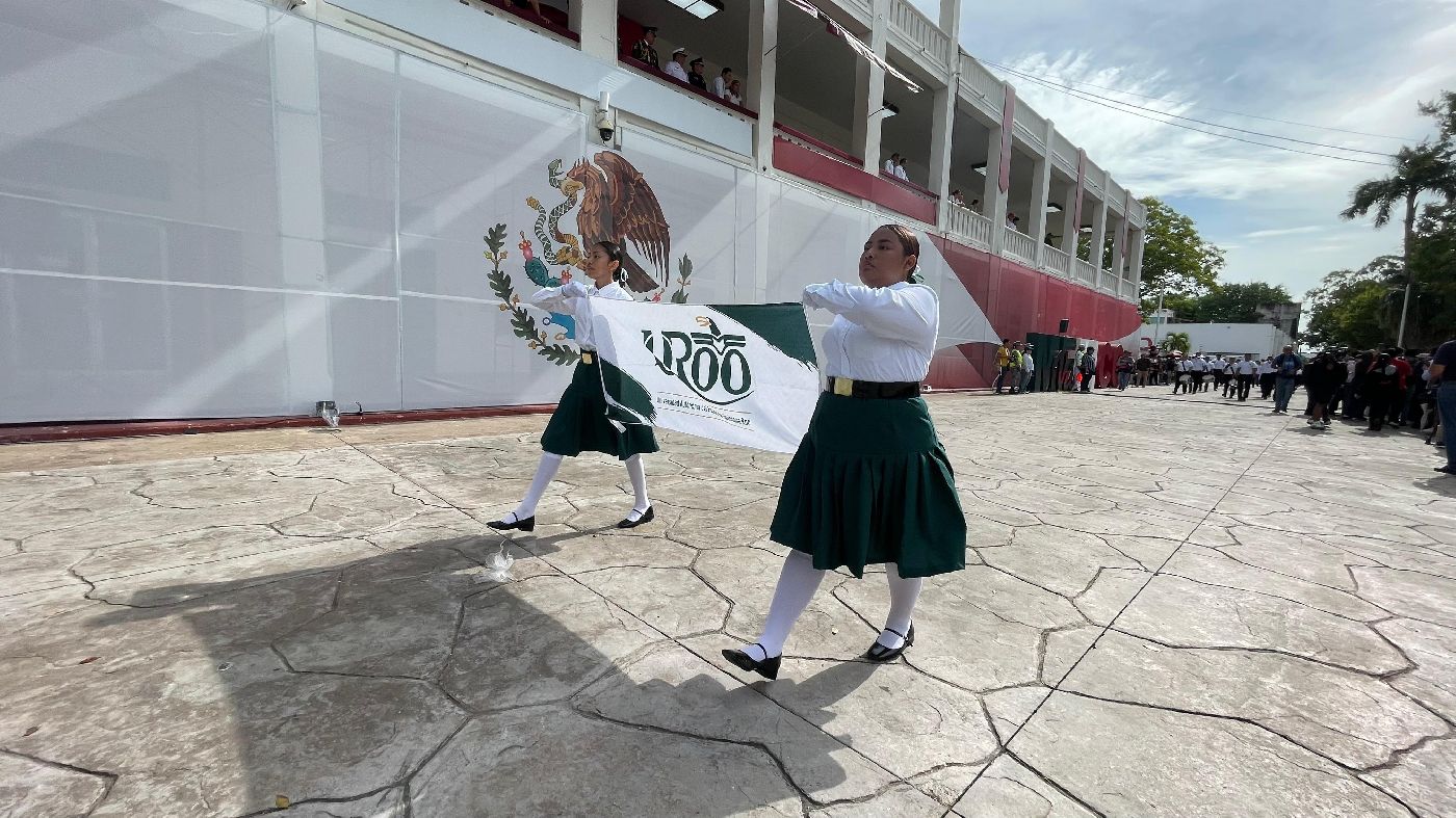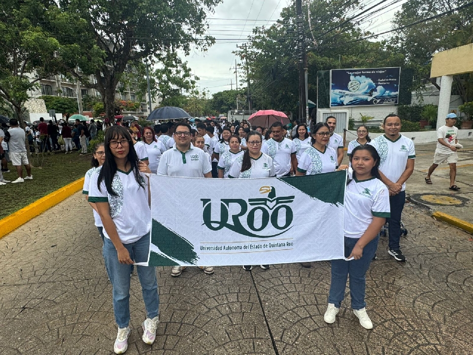 CHETUMAL, 17 de septiembre. – La Universidad Autónoma del Estado de Quintana Roo (UQRoo) mostró presencia en todo el estado durante las celebraciones del 215 aniversario del inicio de la Independencia de México, participando con contingentes en los municipios donde cuenta con campus. Con ello, la institución reafirmó su compromiso de formar a jóvenes con espíritu emprendedor, innovador y con pensamiento crítico, capaces de responder a las cambiantes necesidades de la sociedad quintanarroense.