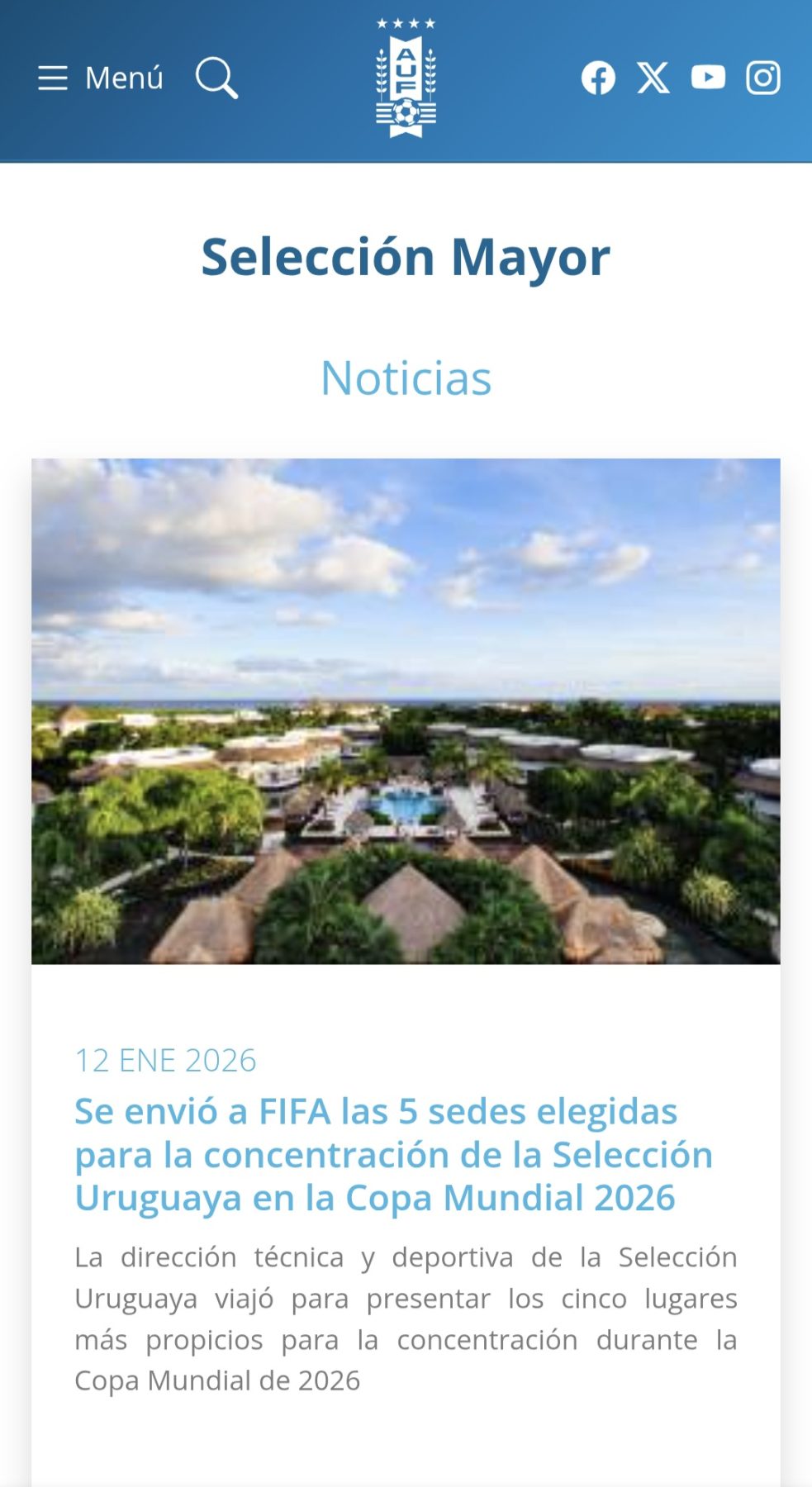 A 153 días que la Selección Charrúa debute en la Copa del Mundo 2026, la Asociación de Futbol de dicho país sudamericano, ha externado a la FIFA sus intenciones de poder tener su campamento previo al evento futbolístico, en el complejo turístico y residencial de “Fairmont Mayakoba”, por encima de cuatro ciudades estadounidenses