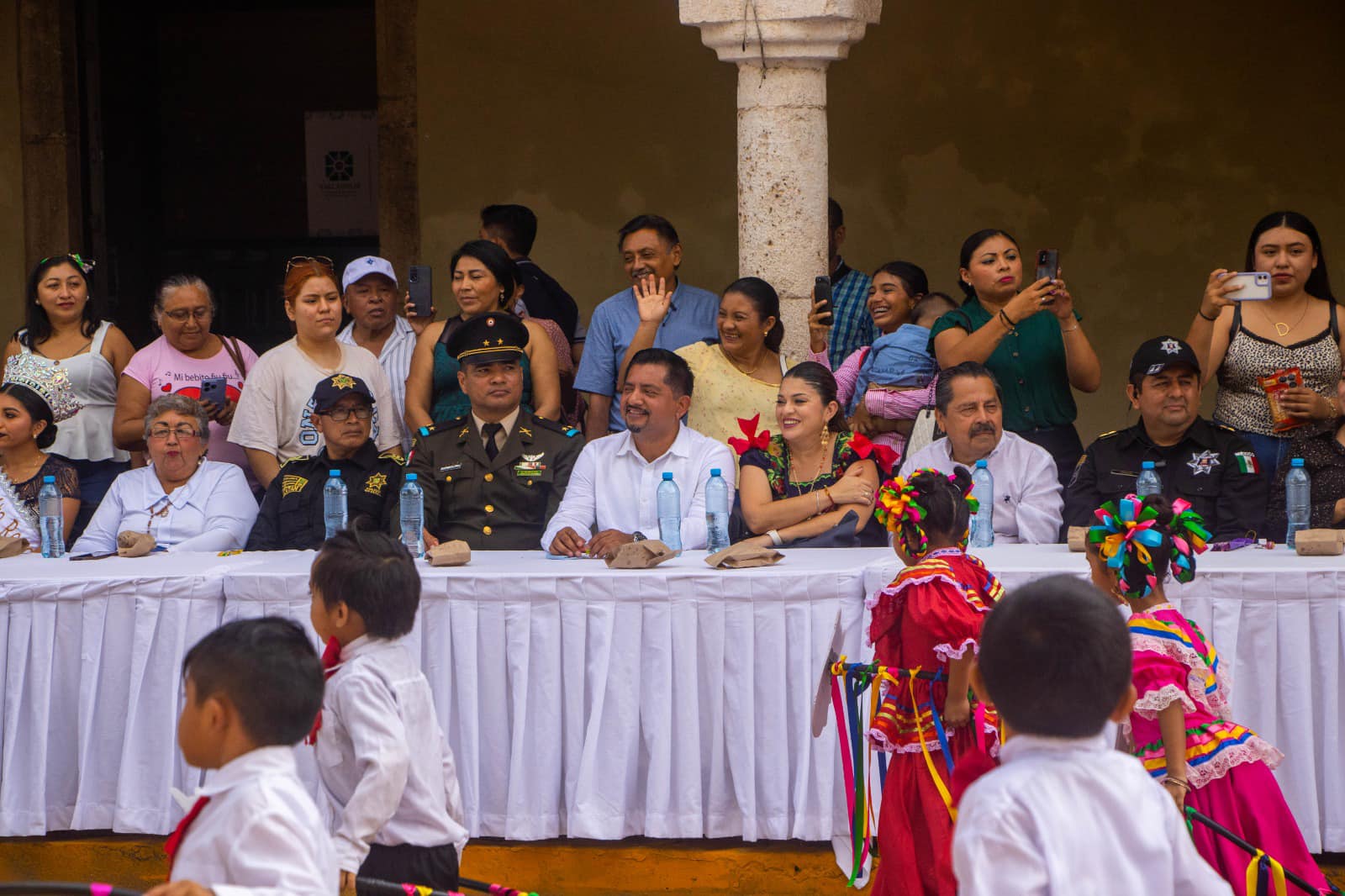 Las figuras simbólicas del evento, Regina Sophia Villanueva Esquivel y Yasuri Yoselin Ek Poot, Niña y Señorita Revolución respectivamente, acompañaron los actos conmemorativos.