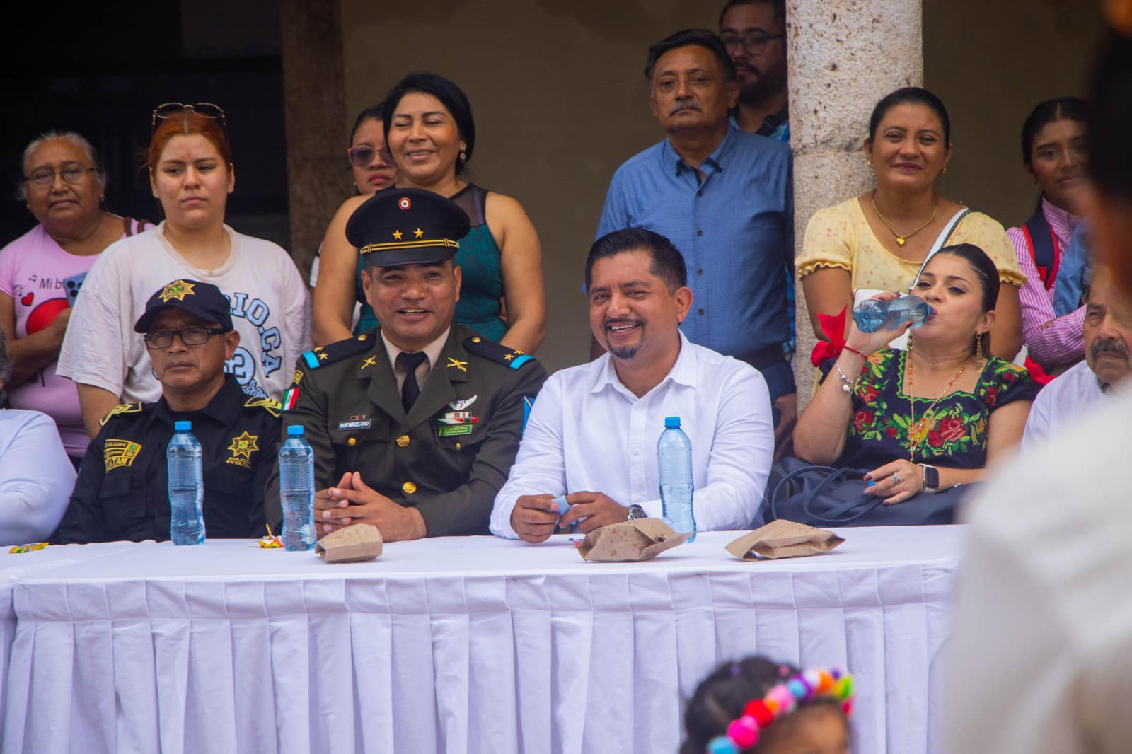 Junto a él estuvieron la presidenta del DIF Municipal, María Teresa Martín López, el representante de la 32ª Zona Militar, teniente coronel de caballería Luis Rodríguez Buen Rostro, y el representante de la Secretaría de Seguridad Pública, Federico Salazar.