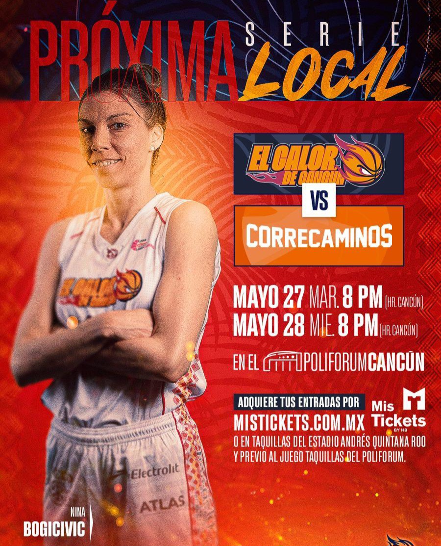 Ahora, El Calor de Cancún se preparará para recibir en la sexta miniserie de la Temporada 2025 de la Liga Nacional de Baloncesto Profesional Femenil Caliente.Mx, a las Correcaminos de la Universidad Autónoma de Tamaulipas (UAT), los días martes 27 y miércoles 28 de mayo en el “Poliforum Cancún” del boulevard Luis Donaldo Colosio en el -Caribe Mexicano-.