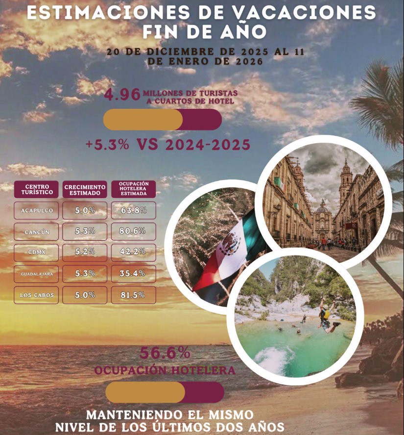 “La temporada de Fin de Año es clave para el sector: moviliza a millones de personas, fortalece la economía local y consolida al turismo como un motor vivo de bienestar para las familias mexicanas”, afirmó.
