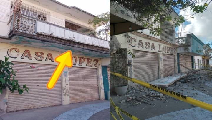 Una vieja estructura de mampostería de una casa y negocio chetumaleño en ruinas se ha desplomado en el corazón de la avenida de los Héroes, muy cerca de Palacio de Gobierno. Se trata de 𝐂𝐚𝐬𝐚 𝐋ó𝐩𝐞𝐳, 𝐝𝐨𝐧𝐝𝐞 𝐦𝐮𝐜𝐡𝐨𝐬 𝐜𝐨𝐦𝐩𝐫𝐚𝐦𝐨𝐬 𝐭𝐨𝐝𝐨 𝐭𝐢𝐩𝐨 𝐝𝐞 𝐩𝐞𝐫𝐢ó𝐝𝐢𝐜𝐨𝐬 𝐲 𝐫𝐞𝐯𝐢𝐬𝐭𝐚𝐬 𝐞𝐧 𝐥𝐚𝐬 𝐝é𝐜𝐚𝐝𝐚𝐬 𝐝𝐞 𝐥𝐨𝐬 𝟗𝟎 y desde mucho antes.