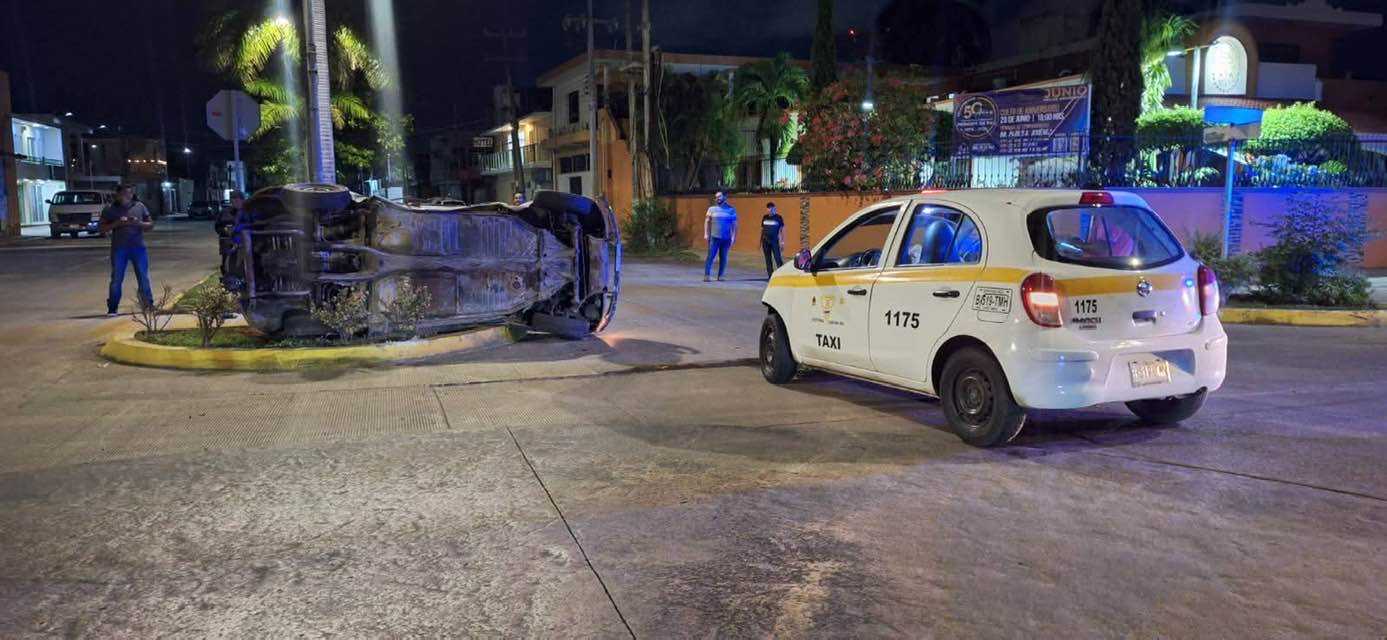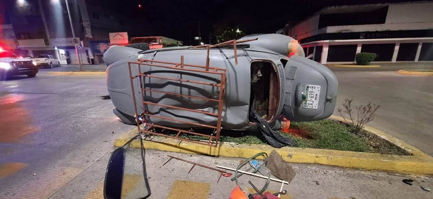 El conductor del compacto circulaba sobre Plutarco Elías Calles cuando, al llegar al cruce, omitió hacer alto total, siendo impactado por un taxi que se desplazaba con prioridad sobre la avenida Héroes. La fuerza del impacto provocó que el “vocho” terminara volcado sobre su costado, quedando en el camellón central.