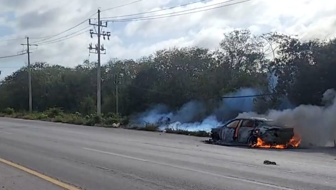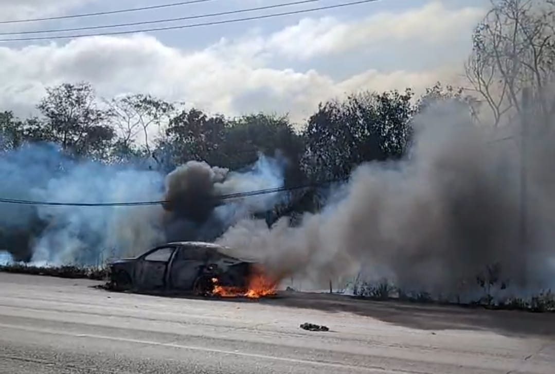 Vehículo se Incendia en Plena Carretera a la Altura del Puente de Chemuyil; No hubo Lesionados