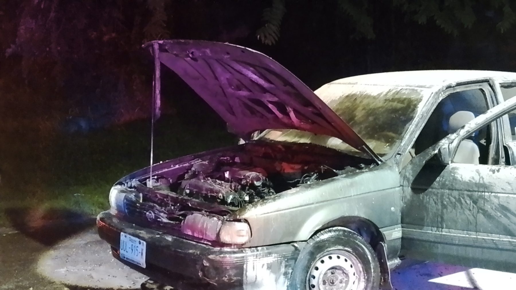 CHETUMAL, 24 de noviembre. – Un incendio vehicular generó alarma entre los habitantes de Calderitas luego de que un automóvil Tsuru comenzara a arder tras un aparente corto circuito en plena vía pública.