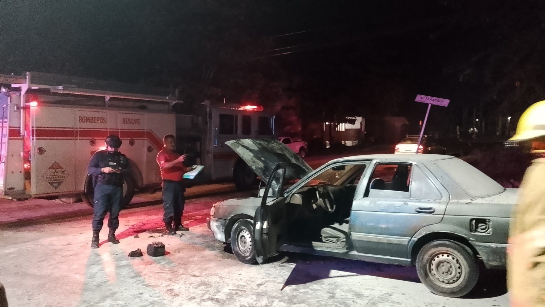 CHETUMAL, 24 de noviembre. – Un incendio vehicular generó alarma entre los habitantes de Calderitas luego de que un automóvil Tsuru comenzara a arder tras un aparente corto circuito en plena vía pública.