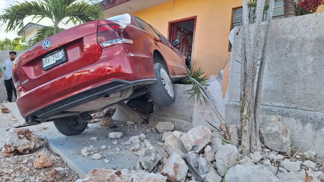 Vehículo se Incrusta en una Barda tras Presunto Desvanecimiento del Conductor en Felipe Carrillo Puerto