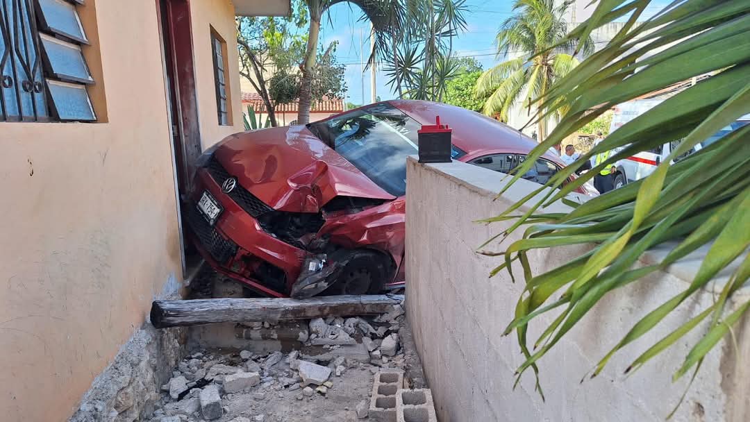 FELIPE CARRILLO PUERTO a 05 de abril.- Un accidente vehicular registrado este sábado en la colonia Cecilio Chi provocó la movilización de los cuerpos de emergencia, luego de que un automóvil particular terminara impactado contra una barda perimetral.