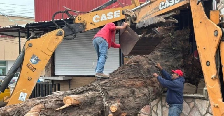 En una publicación en redes sociales, el gobierno compartió fotos en donde se puede ver a su personal de Protección Civil y servicios públicos realizando trabajos de retiro de árboles derribados.