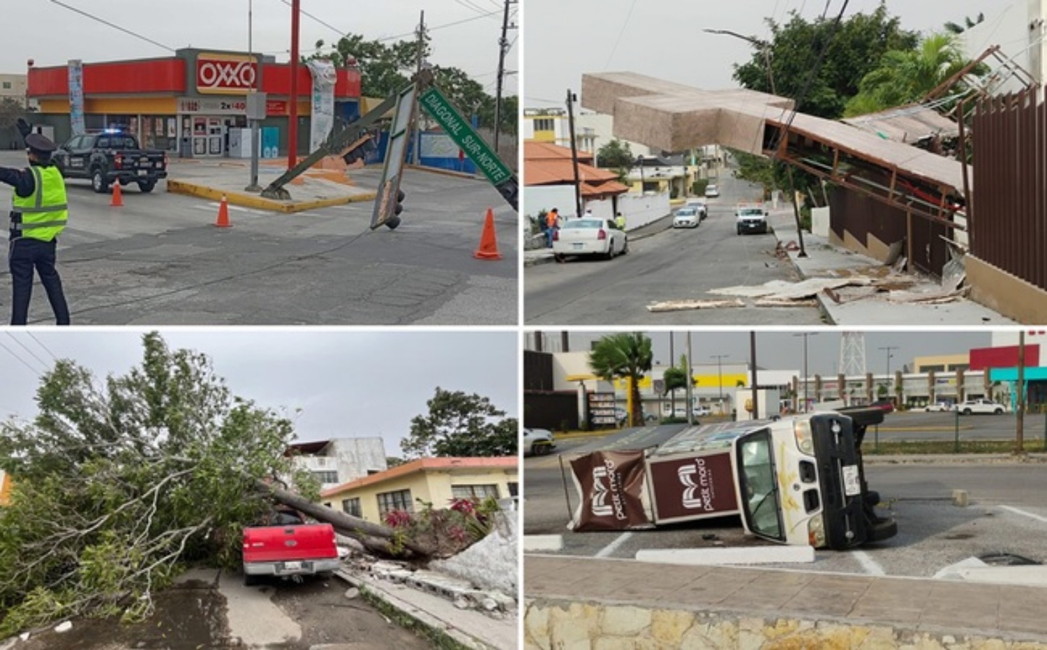 Igualmente, el municipio de Tampico registró caída de anuncios viales, anuncios publicitarios, árboles, postes, tinacos, así como de otros objetos a la intemperie.