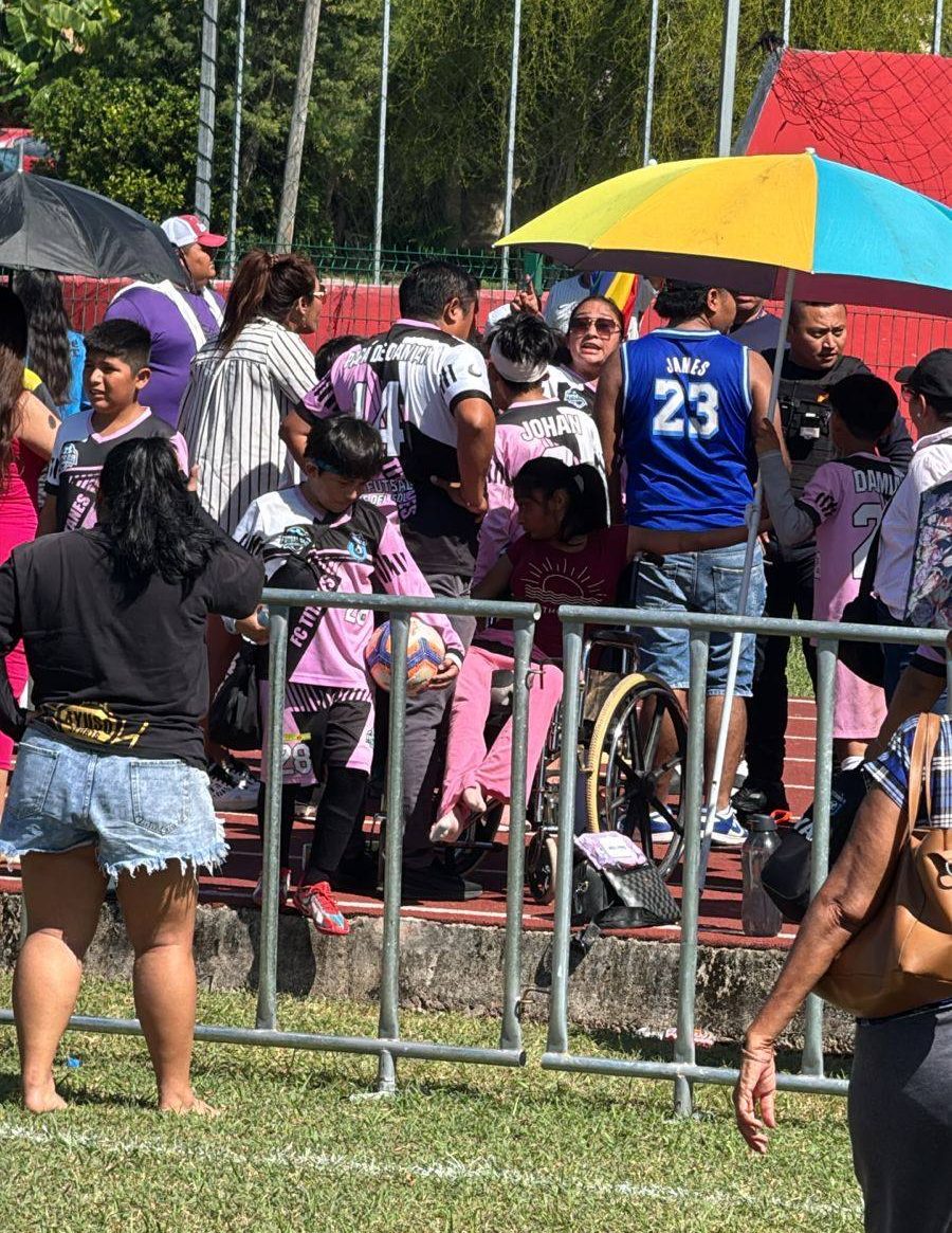 De acuerdo con testimonios, el caos inició cuando el entrenador del equipo identificado con el uniforme rosa —proveniente de Playa del Carmen— agredió físicamente al técnico rival y empujó a menores para participar en la confrontación.