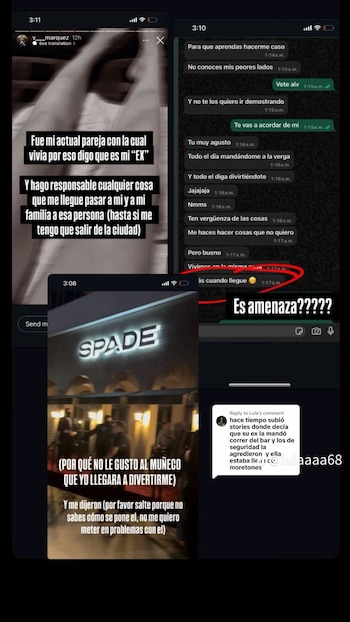 “Hago responsable (de) cualquier cosa que me llegue a pasar a mí y a mi familia a esa persona (hasta si me tengo que salir de la ciudad)”, decía uno de los mensajes atribuidos a Márquez. No se precisó el nombre del ex en cuestión ni cuándo exactamente lo publicó, pero la referencia generó aún más especulaciones.