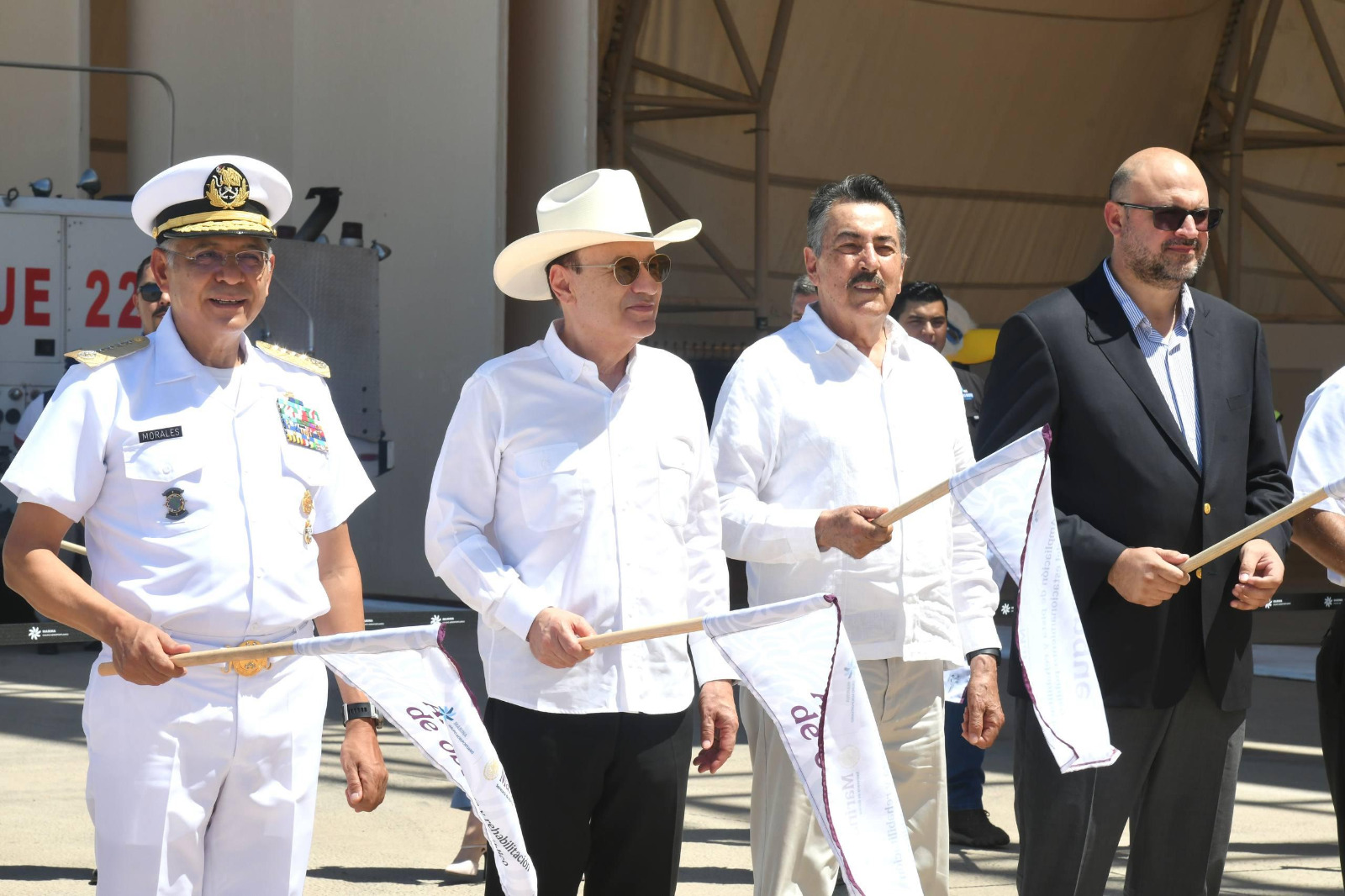 En el evento también estuvieron presentes el Presidente Municipal de Cajeme, Lic. Carlos Javier Lamarque Cano; el Presidente de Grupo IAMSA, Roberto Alcántara Rojas; el Comandante de la Segunda Región Naval, Vicealmirante Daniel Escobedo Escobedo, y el Administrador del Aeropuerto de Internacional de Ciudad Obregón, Almirante Humberto Neri Peregrín.