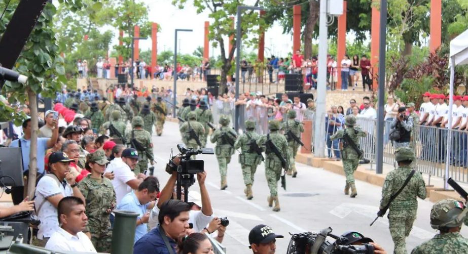 El 57 Batallón de Infantería reportó sin novedades el desfile cívico-militar en el que participaron, por parte del Ejército, dos bandas de guerra y 371 elementos: 25 vehículos, cuatro embarcaciones, un equipo anfibio, tres canes y 50 soldados de servicio militar nacional.