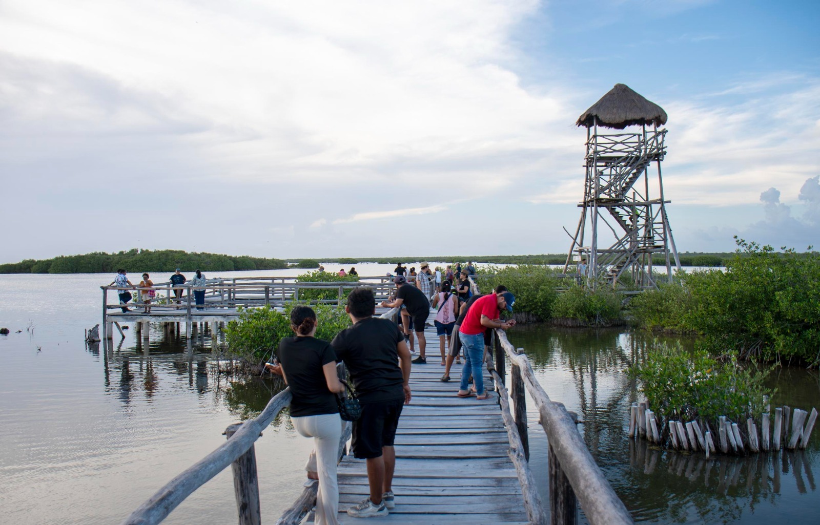 La jornada incluyó recorridos interpretativos en la Laguna X’tacún, a bordo de embarcaciones, donde los asistentes conocieron el mogote central que resguarda un ojo de agua dulce y funge como refugio natural de aves y otras especies. También participaron en la explicación de las acciones de restauración de manglar que la FPMC impulsa junto con la comunidad, grupos sociales y académicos, con el objetivo de asegurar un futuro más sostenible para Cozumel.