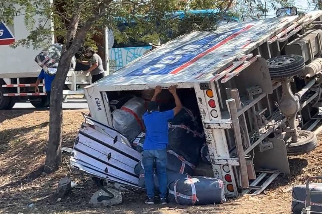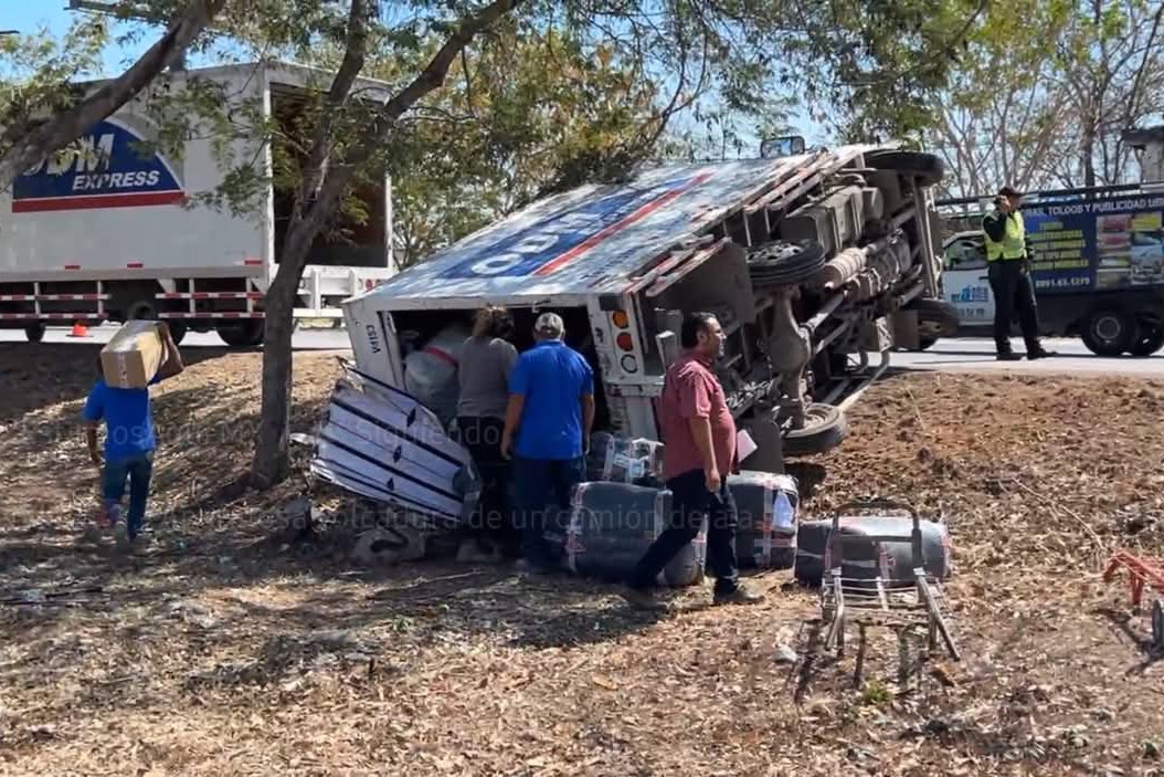 Volcado Acabo un Camión Porque el Chófer evito Chocar Contra un Vehiculo en Periférico de Mérida