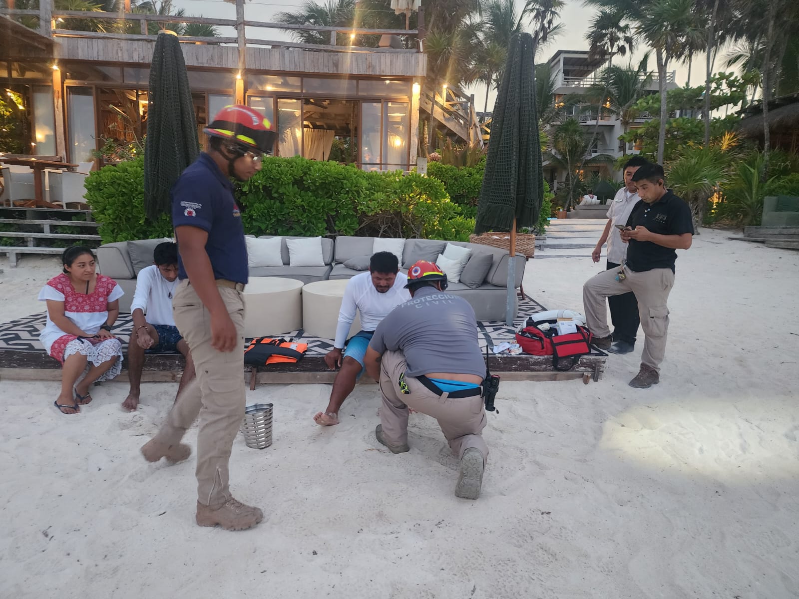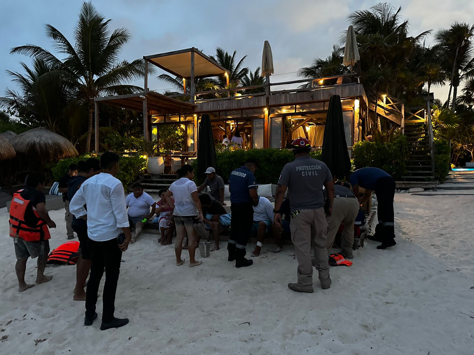 Una vez en la playa, elementos de la Dirección de Protección Civil de Tulum y paramédicos de una empresa privada acudieron al sitio para brindar atención prehospitalaria. El capitán de la embarcación, identificado como Miguel Ángel Castillo Gamboa, de 32 años, presentó una herida leve que fue atendida en el lugar, pero fue trasladado posteriormente a la clínica Costamed para una valoración más detallada.