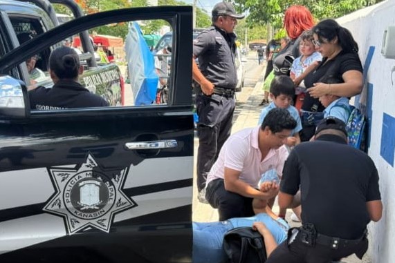 KANASÍN, YUC.- 3 de septiembre.- Un aparatoso accidente de mototaxi dejó como saldo a cuatro personas lesionadas, incluyendo a tres menores de edad que acababan de salir de la escuela. El incidente ocurrió en la calle 28 con 21, en el centro del municipio de Kanasín, cuando la unidad volcó aparatosamente sobre la vía.