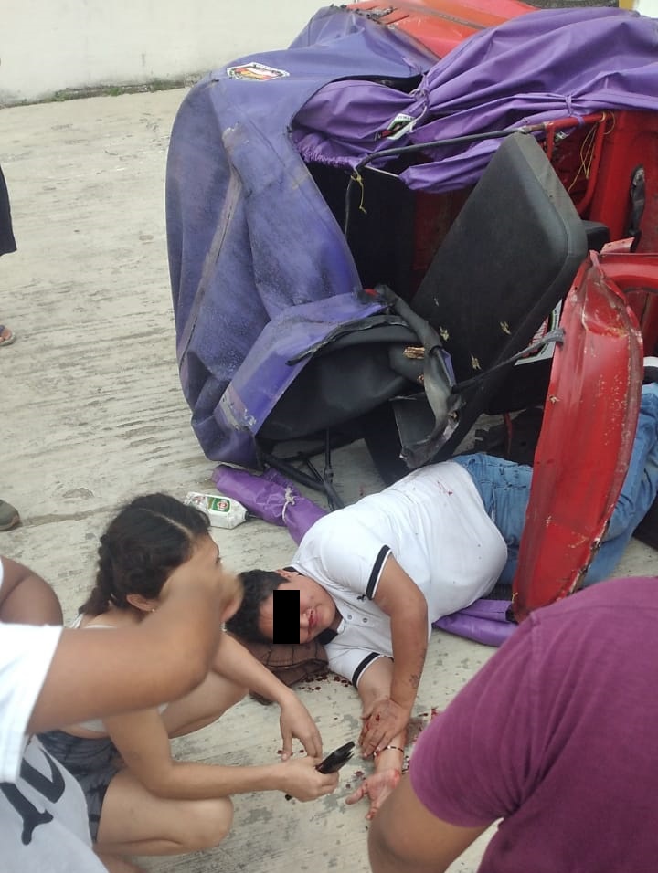 CANCÚN, Q. Roo, 13 de enero.- Una conductora de mototaxi resultó lesionada tras volcar su unidad en el fraccionamiento Cielo Nuevo, en la Región 249 de Cancún.