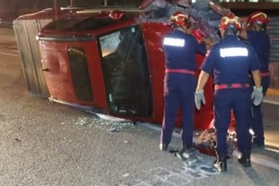 El impacto hizo que el vehículo se elevara y terminara volcado sobre su costado derecho. Afortunadamente, ninguno de los tripulantes sufrió lesiones. Posteriormente, solicitaron la asistencia de su aseguradora para hacerse cargo de los daños.