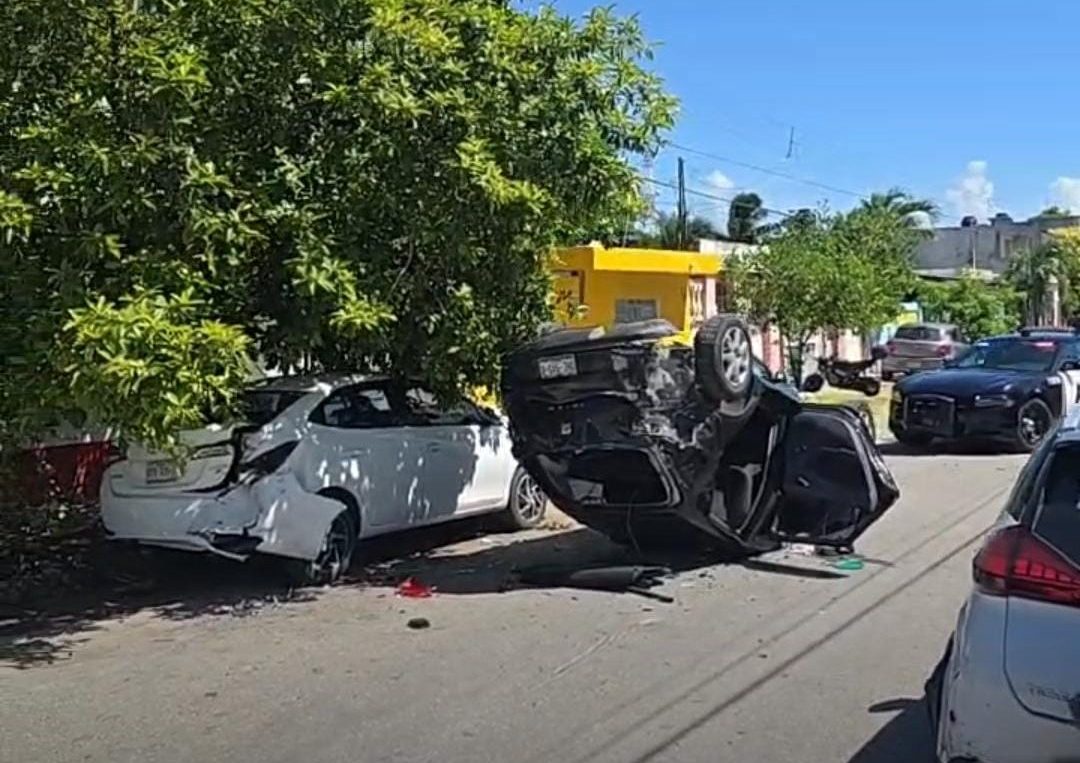 De acuerdo con los primeros reportes, al menos tres vehículos estuvieron involucrados en el percance, uno al parecer se encontraba estacionado, mientras que el segundo terminó volcado sobre la cinta asfáltica y el tercero se encontraba con la parte frontal destrozada. Testigos en el lugar señalaron que la imprudencia al volante y el exceso de velocidad pudieron haber sido factores determinantes en el accidente, una constante que continúa agravando la seguridad vial en las calles de la capital quintanarroense.