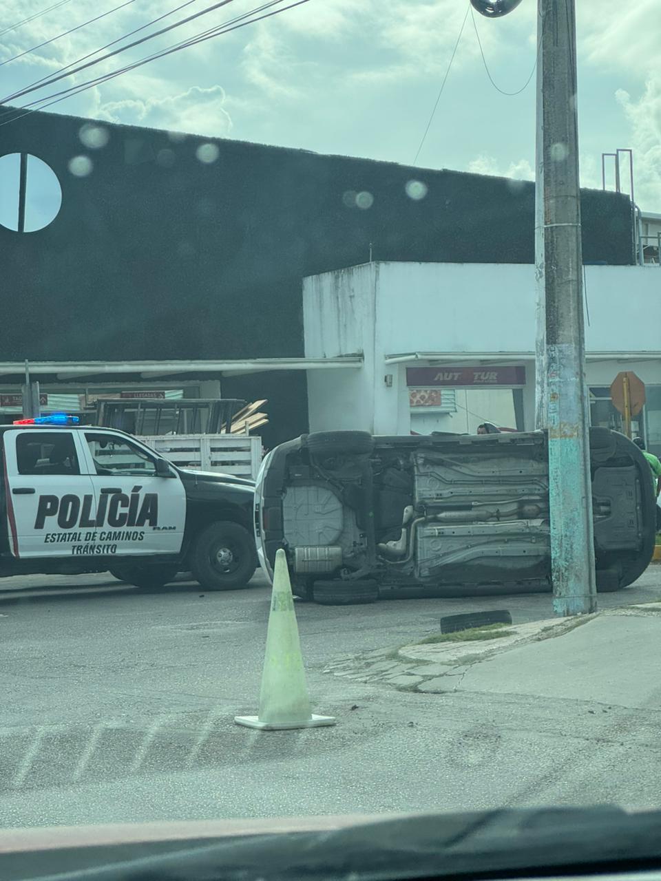 CHETUMAL, 5 de diciembre. – En la capital del estado ocurrió un nuevo recordatorio de la fragilidad de su infraestructura vial y del creciente riesgo en sus arterias más transitadas. Sobre la avenida Insurgentes, a la altura del cruce con la calle Palermo y justo frente a la Terminal de Autobuses, una camioneta blanca y un automóvil Nissan Sentra azul protagonizaron un aparatoso accidente que terminó con la volcadura de la camioneta, la cual quedó recostada sobre su costado en el pavimento. El percance paralizó momentáneamente el flujo vehicular y atrajo la atención de transeúntes y comerciantes de la zona.
