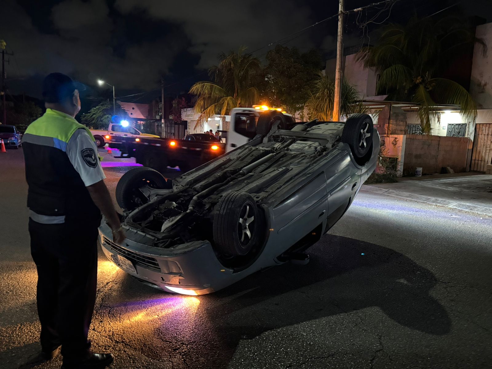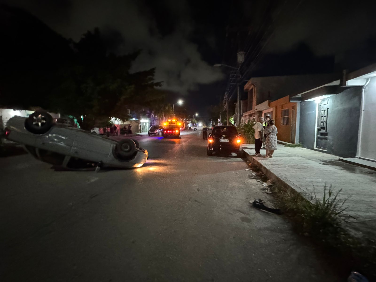 CANCÚN, QRoo, 23 de julio de 2025.- Una tragedia estuvo a punto de consumarse en plena zona habitacional de Cancún, luego de que un hombre de aproximadamente 65 años, con problemas visuales y presunto exceso de velocidad, provocara una aparatosa volcadura en la región 222, dejando como saldo una persona policontundida y daños materiales en al menos dos vehículos.
